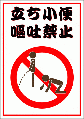 どちらも立ち小便しているところと、ひざまずいて嘔吐しているイラストに禁止マークを描いています。
